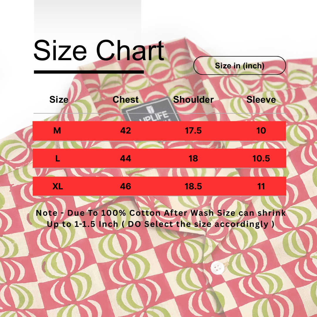 Cuban Collar Shirt with Short Sleeves Handblock Print 100% Cotton